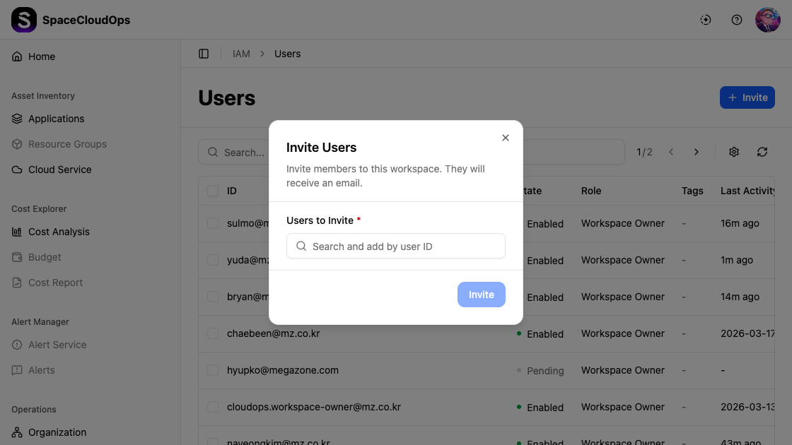 Click the [Invite] button to send invitations. Invited users will receive an email notification.